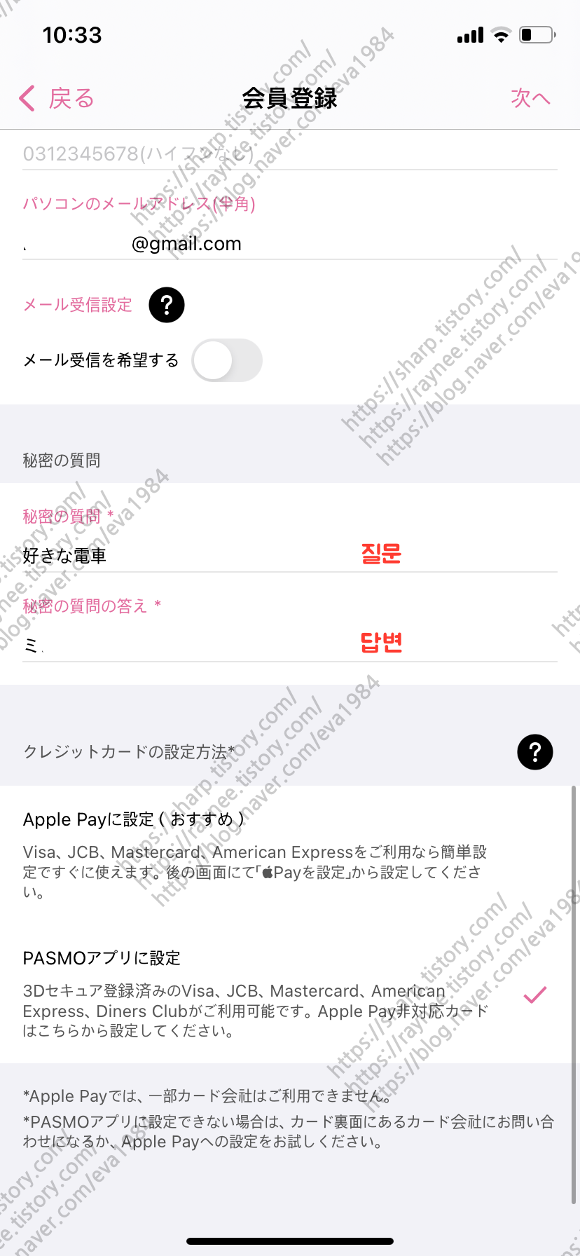 신용카드 설정은 전 현지에서 충전할꺼기 때문에 PASMO 앱으로 설정하였습니다.