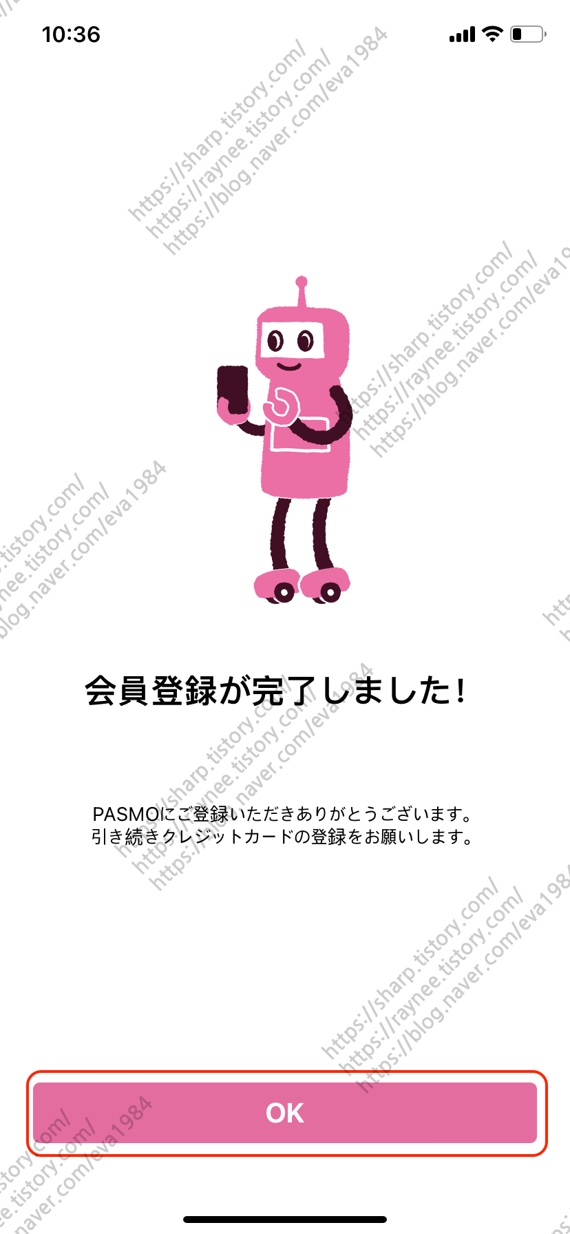 파스모 앱에서도 OK를 눌러 완료를 하면 됩니다.