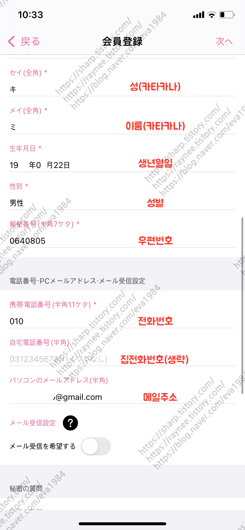 성별은 전 남성이니 남성을 선택하였고 우편번호는 숙소인 호텔 주소의 우편번호를 입력하였습니다.